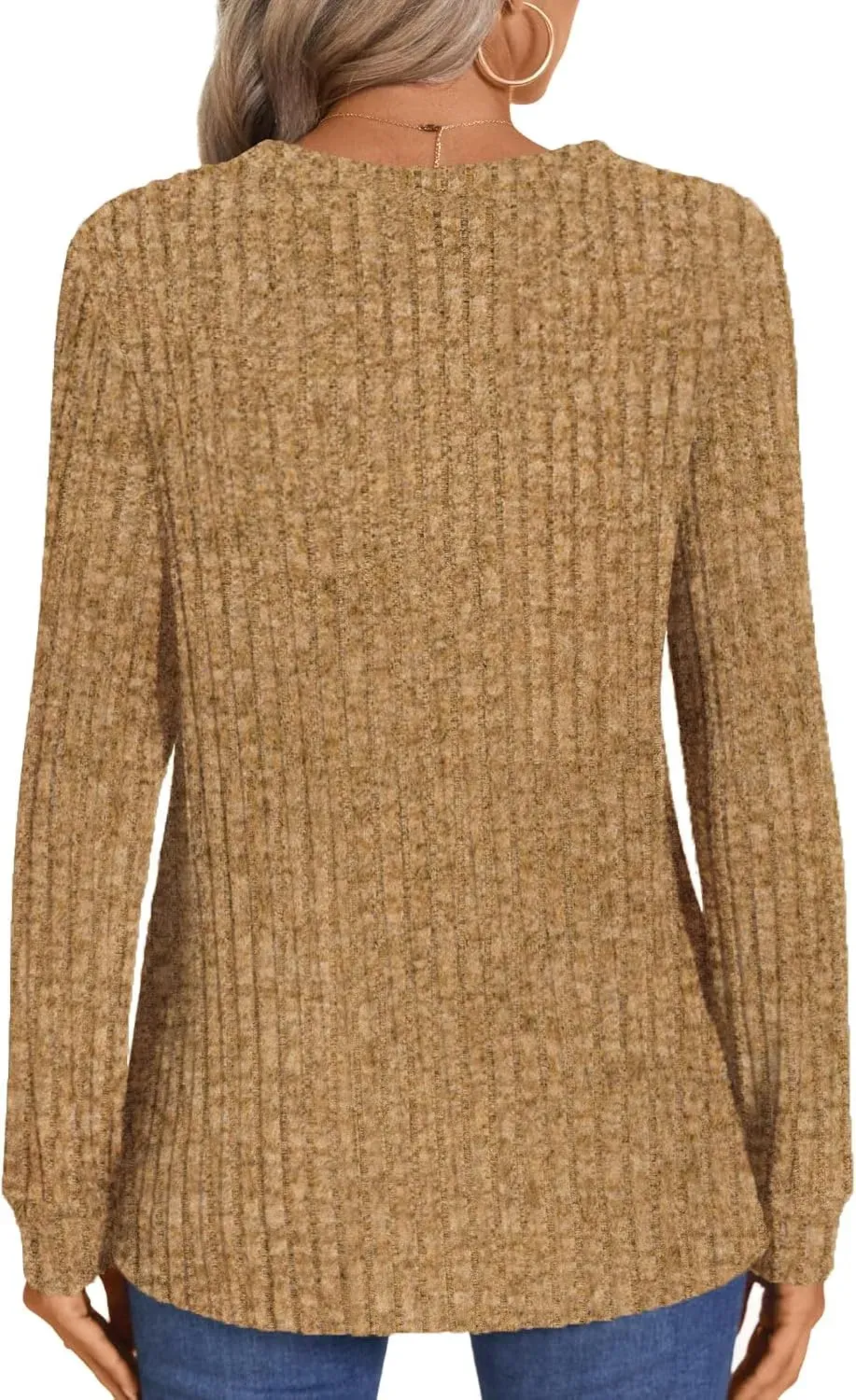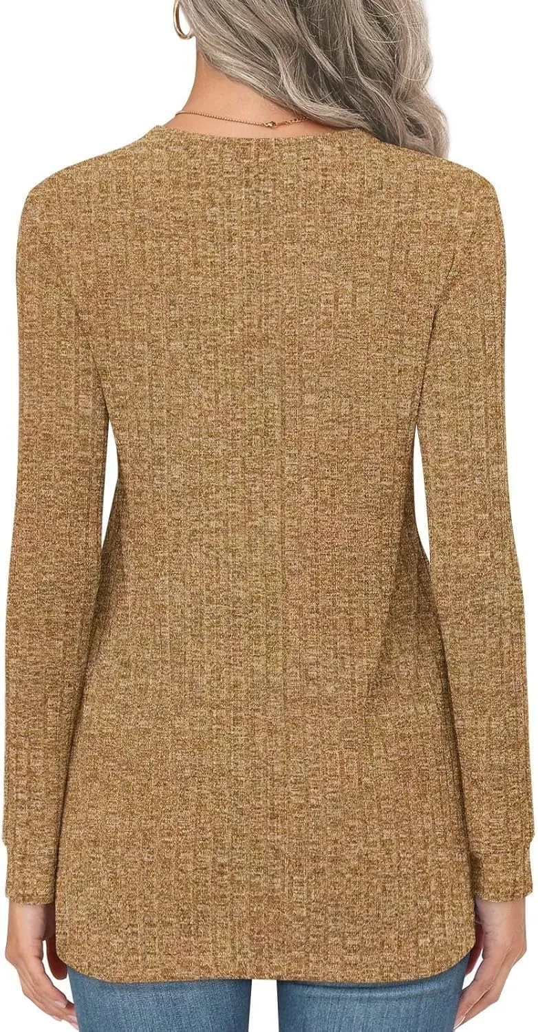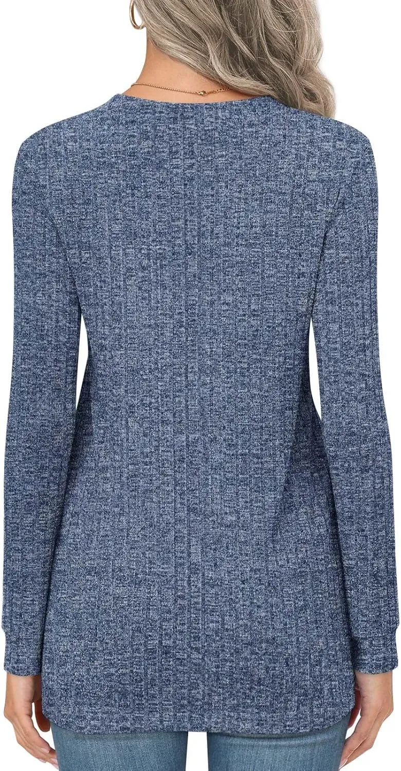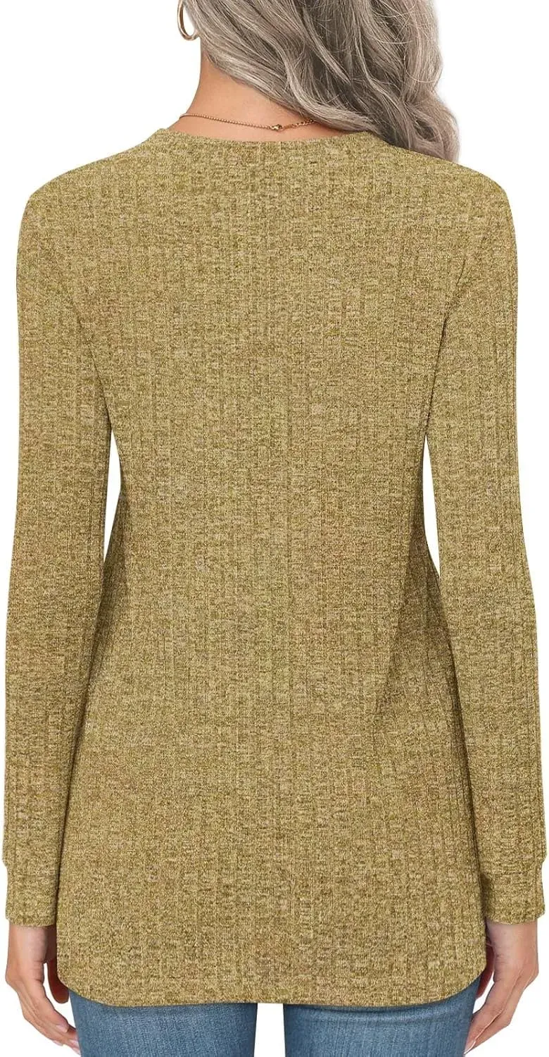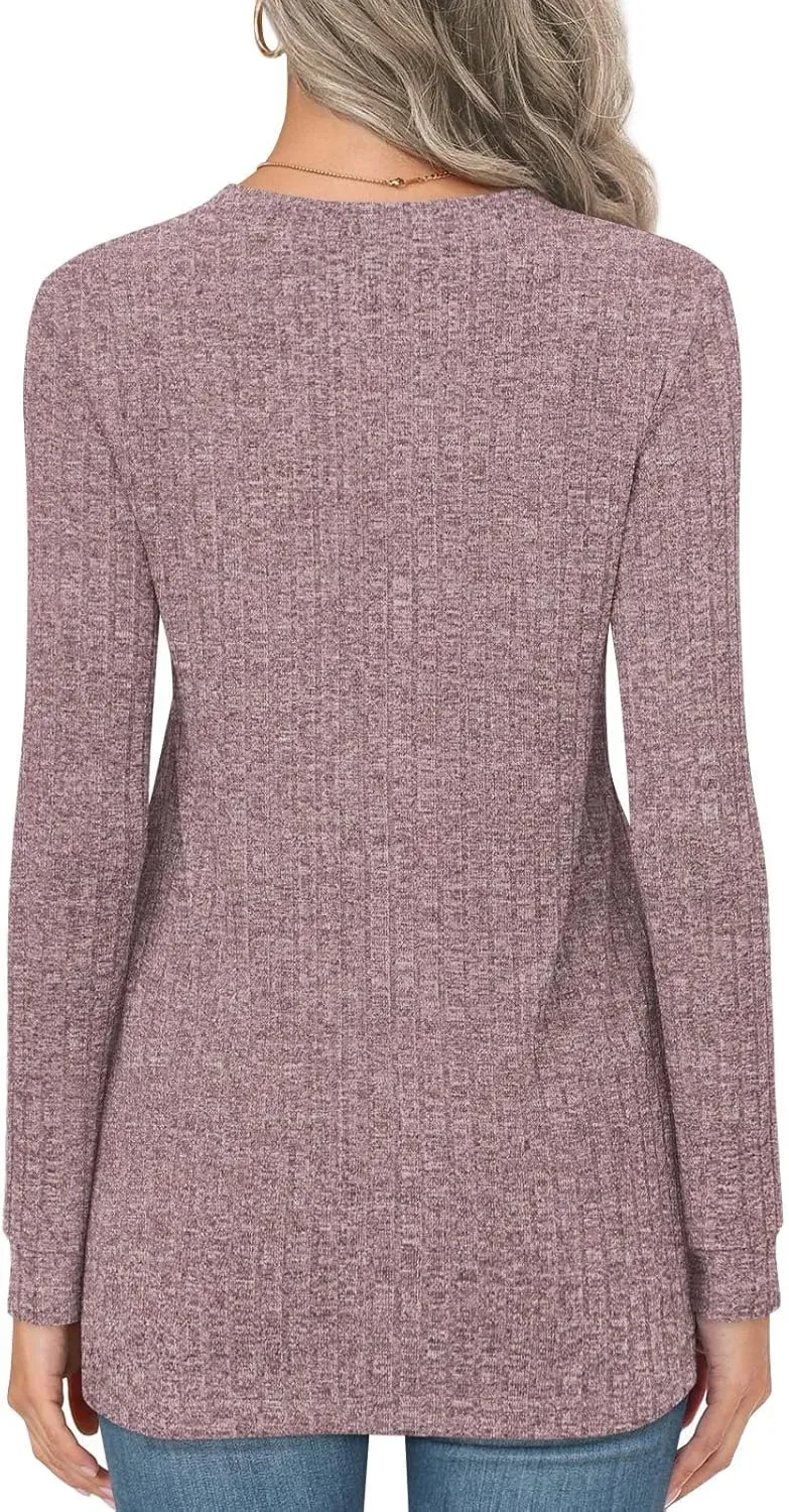 • HOTGIFT Womens 2024 Fall Winter Tunic Tops Long Sleeve Casual T-Shirts Soft Comfy Stripe Blouse Lightweight