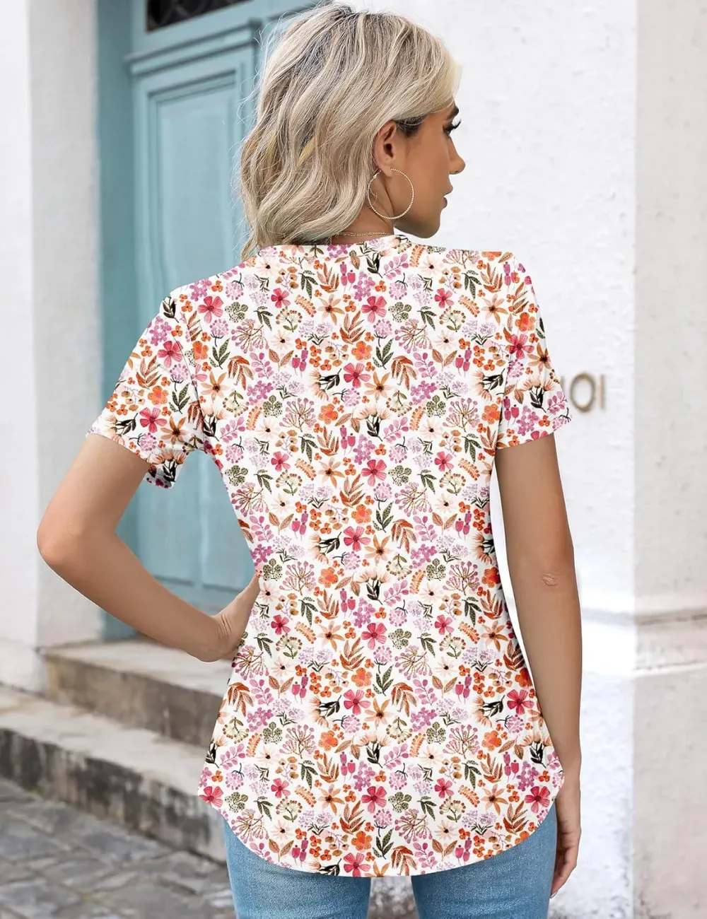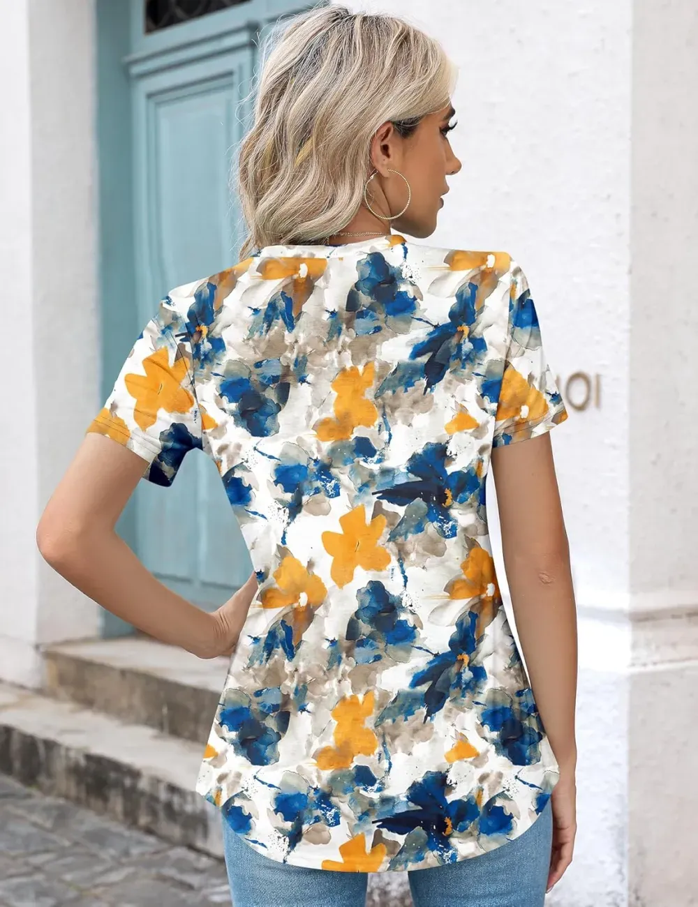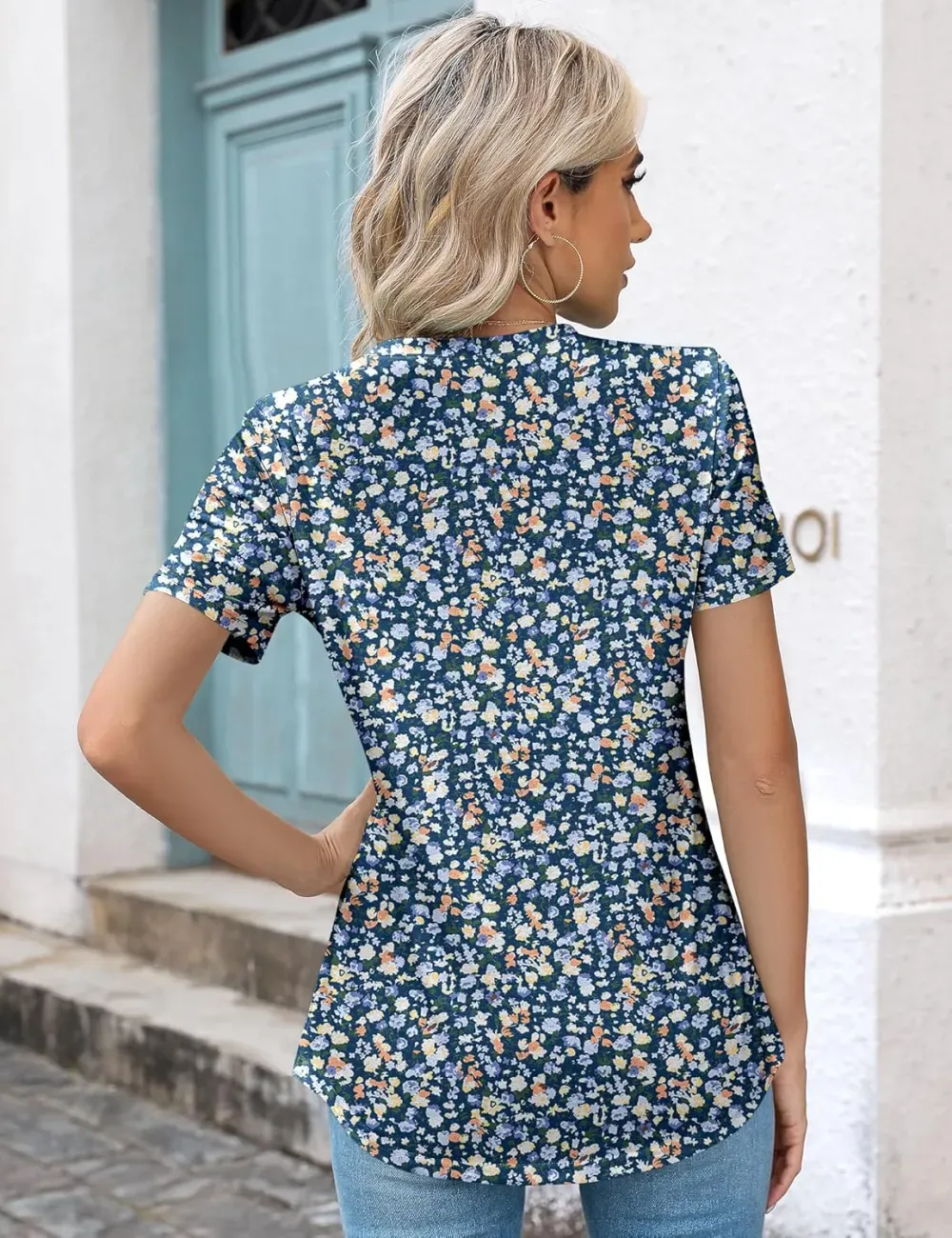 • Kistore Womens Casual Crew Neck Short Sleeve Pleated Tops Blouses Fashion Clothes 2024