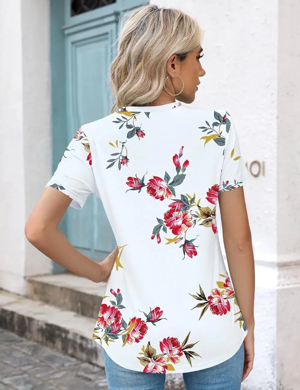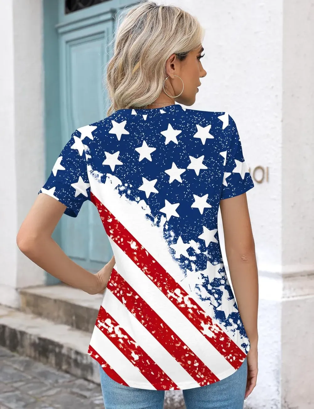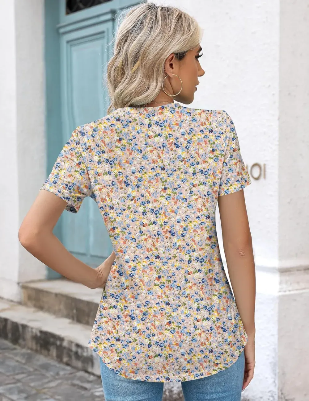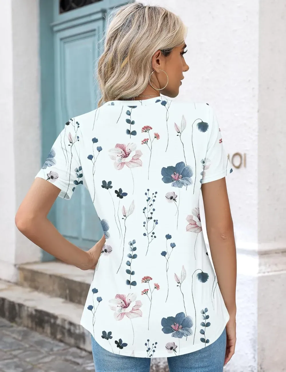 • Kistore Womens Casual Crew Neck Short Sleeve Pleated Tops Blouses Fashion Clothes 2024