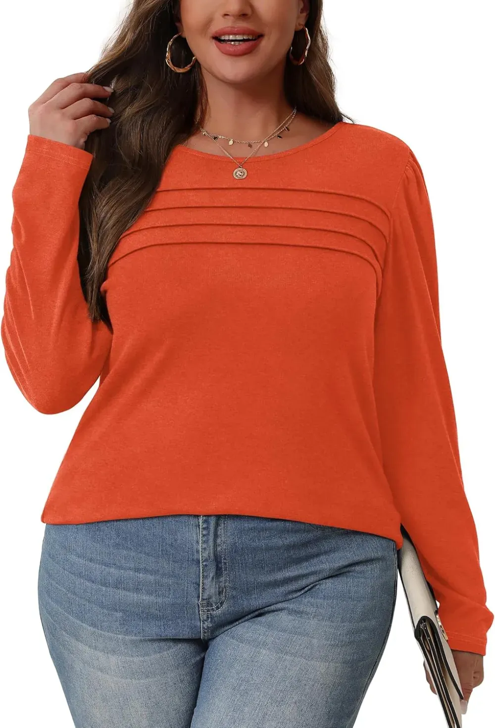 OFEEFAN Long Sleeve Shirts for Women Fall Fashion 2024 Dressy Casual Blouses Trendy Pleated Tunic Tops for Leggings