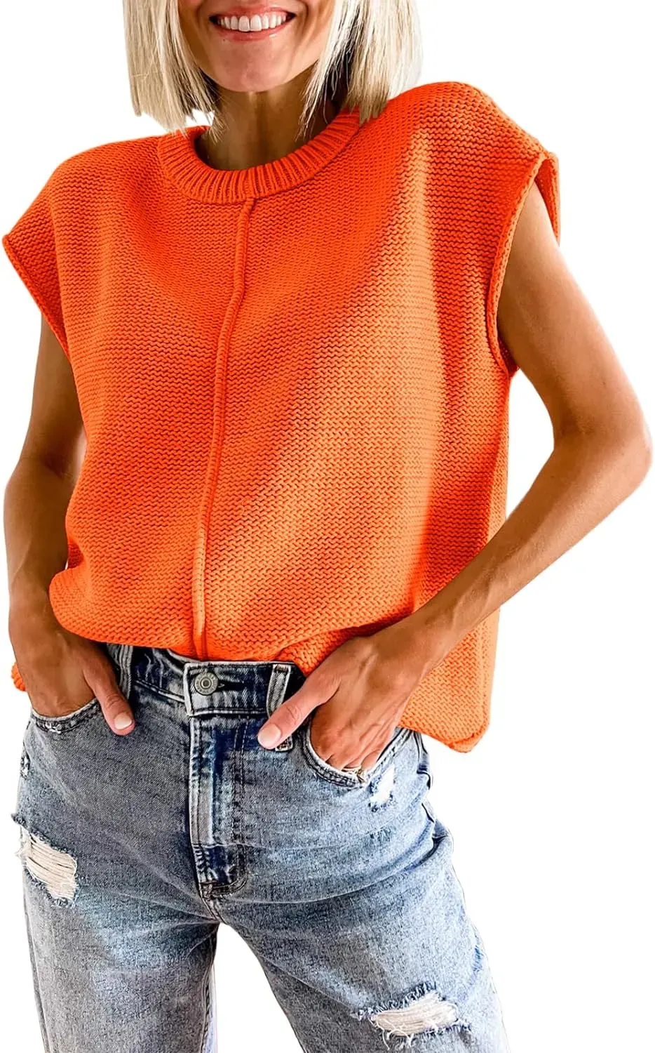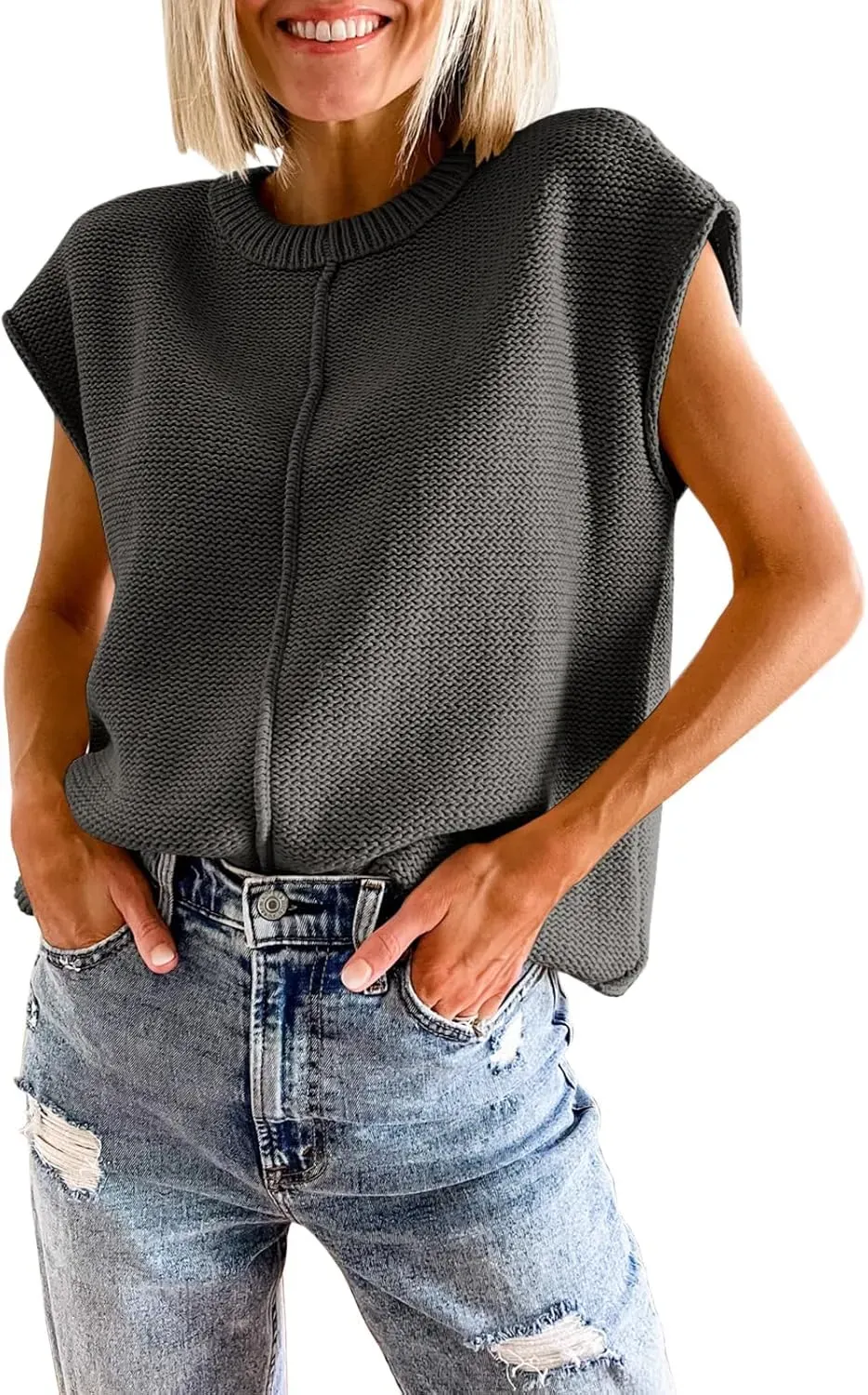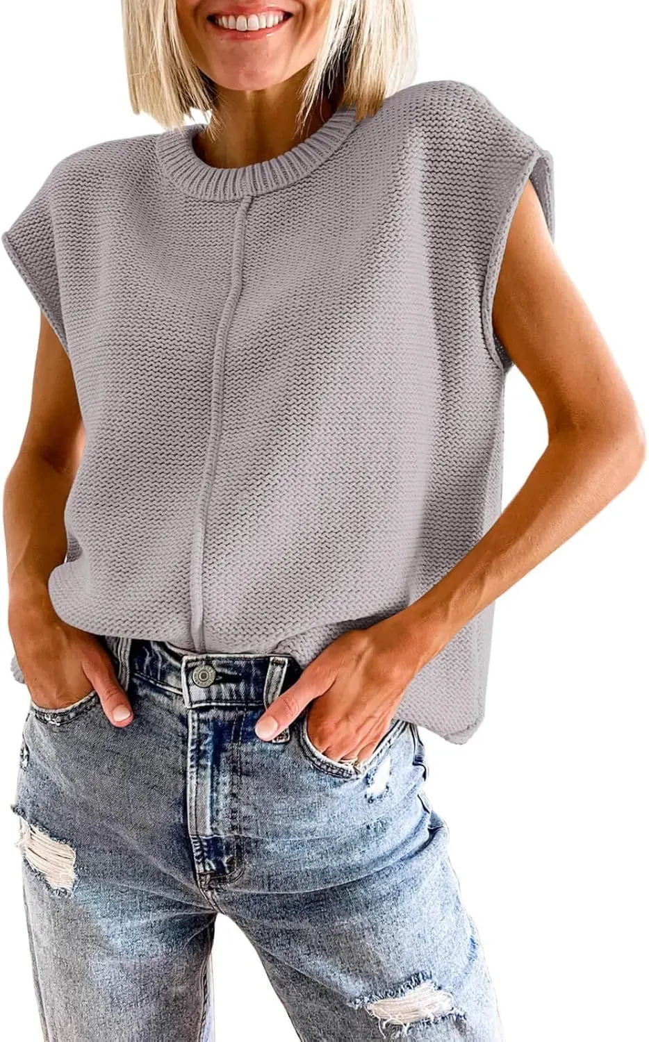 Saodimallsu Womens Summer Cap Sleeve Tops Casual Crew Neck Loose Fit Knit Lightweight Sweater Pullover Top