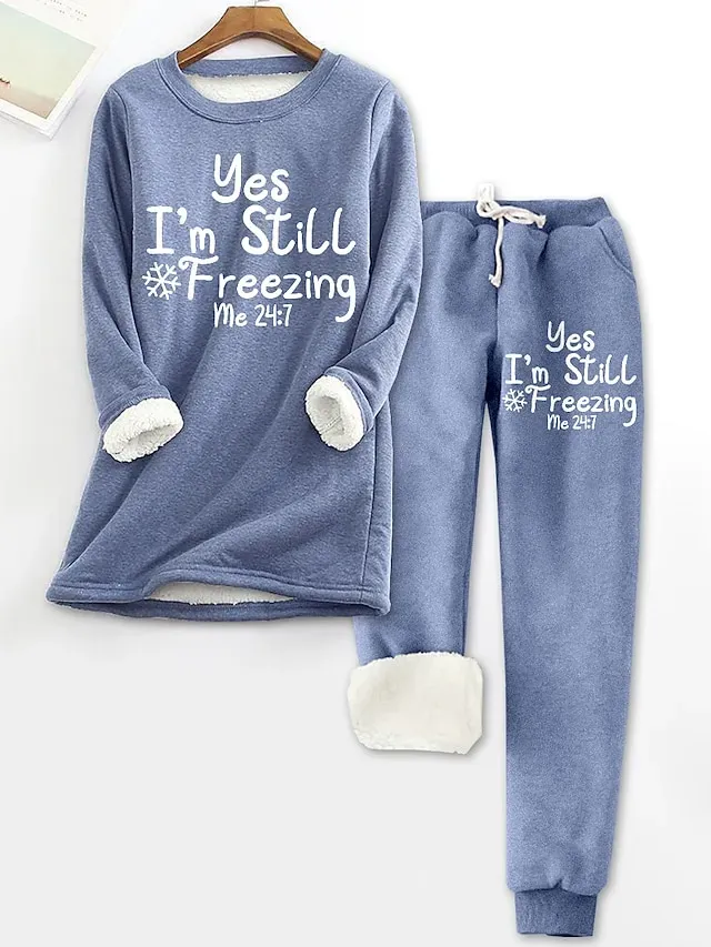 Women's Pajama Top and Pant Letter Warm Comfort Soft Home Daily Bed Fleece Warm Breathable Crew Neck Long Sleeve Pullover Pant Elastic Waist Fall Winter